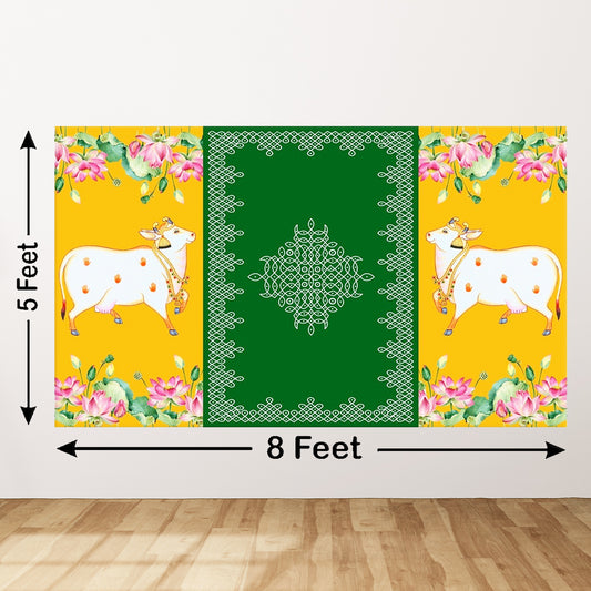 Tirupati Balaji Tilak with Cows and Muggu Design Backdrop Curtain for Decoration Backdrop for Pooja Decoration Traditional Size (5x8)FTRegular price $29.47 CADRegular priceUnit price / per$40.00 CADSale price $29.47 CADSale