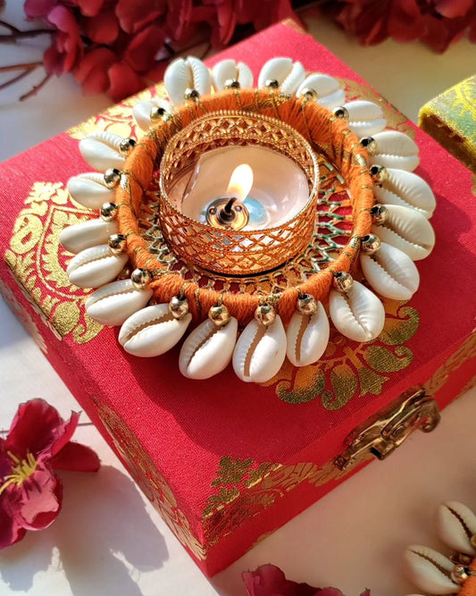 Golden Swastik Diya | Red Box Swastik Diya – Return Gift for Diwali, Pooja, Housewarming & Baby Shower