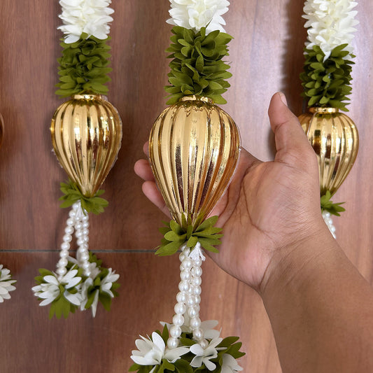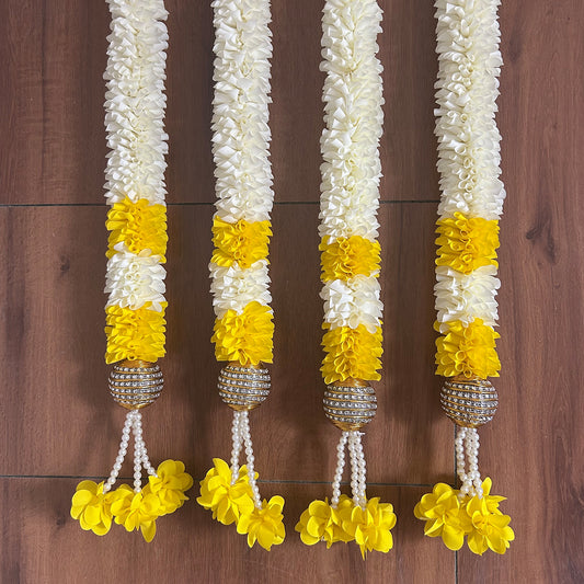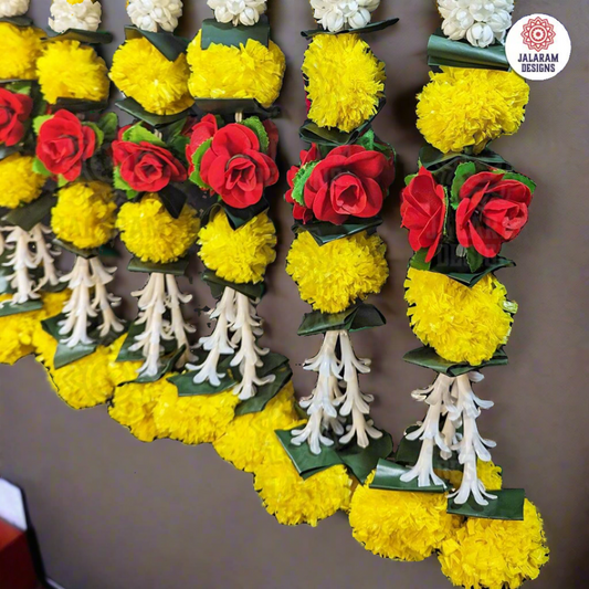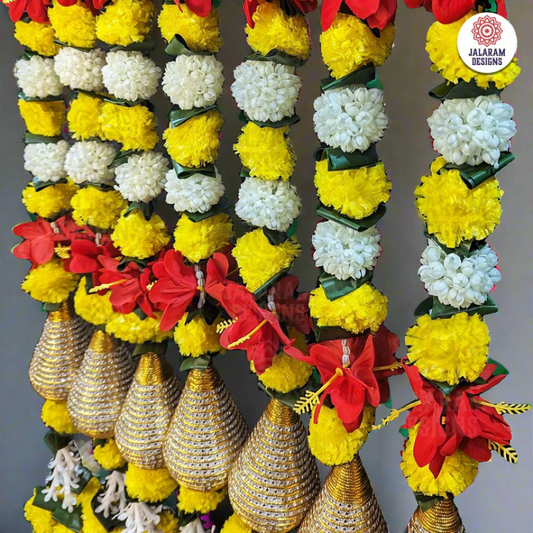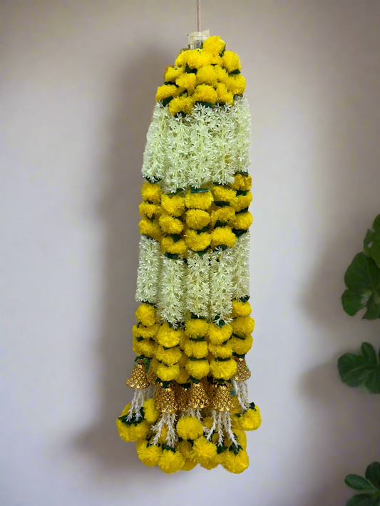 Decorative Yellow Marigold, Rajnigandha, And Diamond Dangler Strings