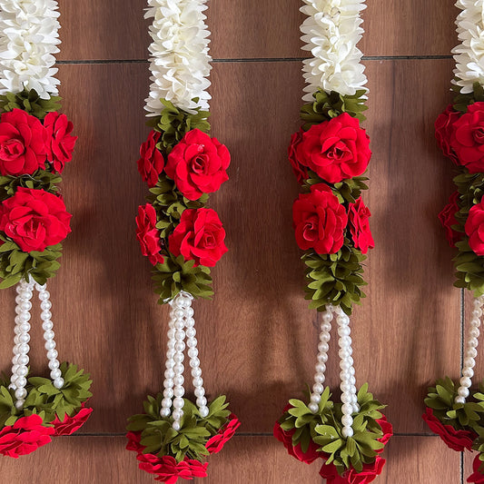 Red Rose and White Pearl Decorative Garland/Stream for Ganesh,Navratra, Diwali and Other Festivals and Occasions