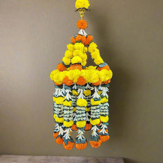 Decorative Yellow And Orange Marigold Jhoomar with Strings