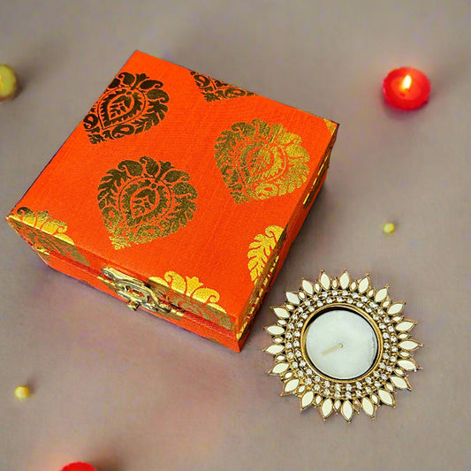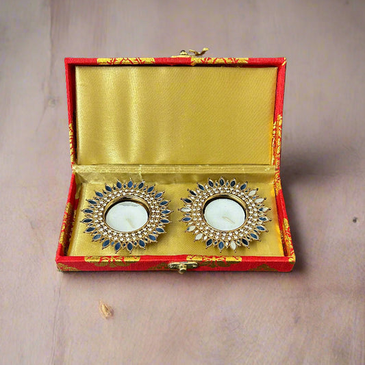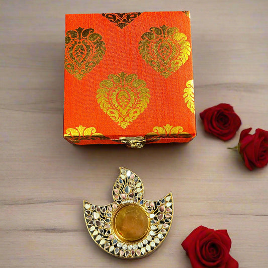 Golden Swastik Diya | Red Box Swastik Diya – Return Gift for Diwali, Pooja, Housewarming & Baby Shower