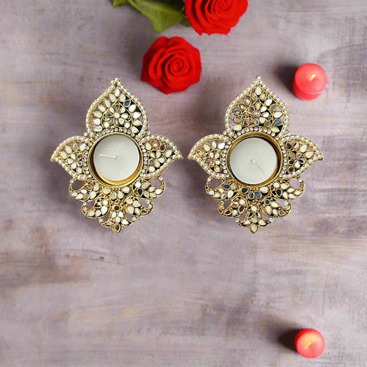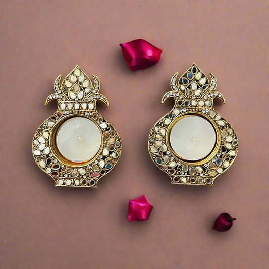 Set Of 2 Diamond Bangle Diya Tea Light – Diwali Decorative T-light Holder (Assorted Colors)