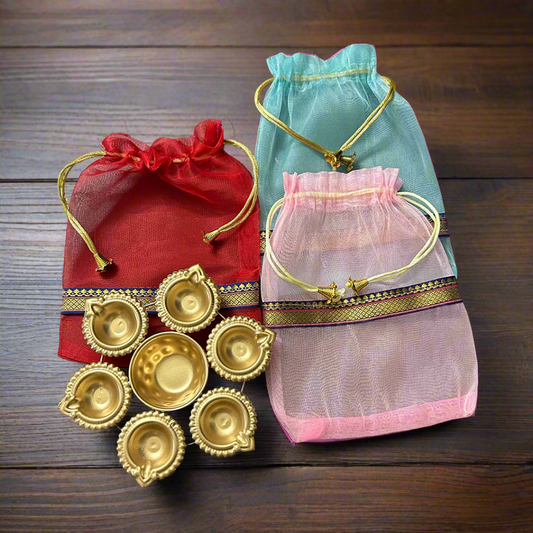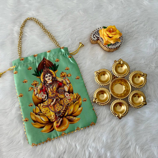 Ganesha Potli Bag with Tilak/Haldi Kumkum Platter | Diwali. Pooja, Baby Shower, Housewarming Return Gift