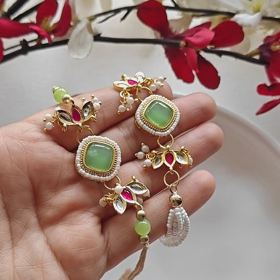 Celebrate the beautiful bond of love and tradition with our Bhai Bhabhi Rakhi Set โ thoughtfully handcrafted to make your Raksha Bandhan extra special. This charming set includes one rakhi for your brother and a matching lumba rakhi for your bhabhi, designed to symbolize warmth, respect, and affection.