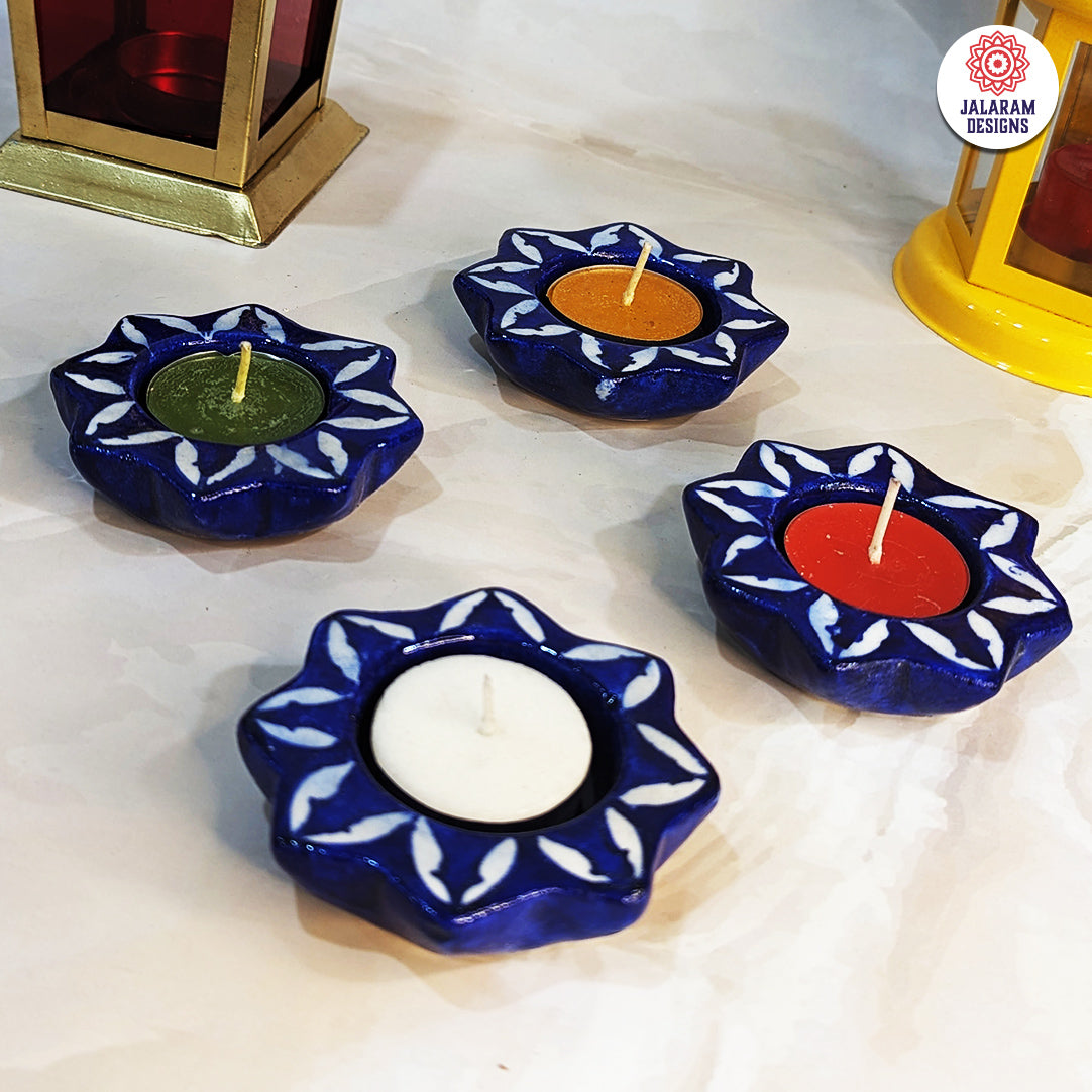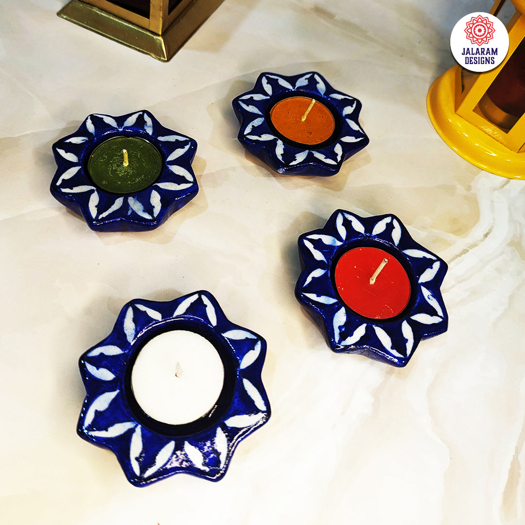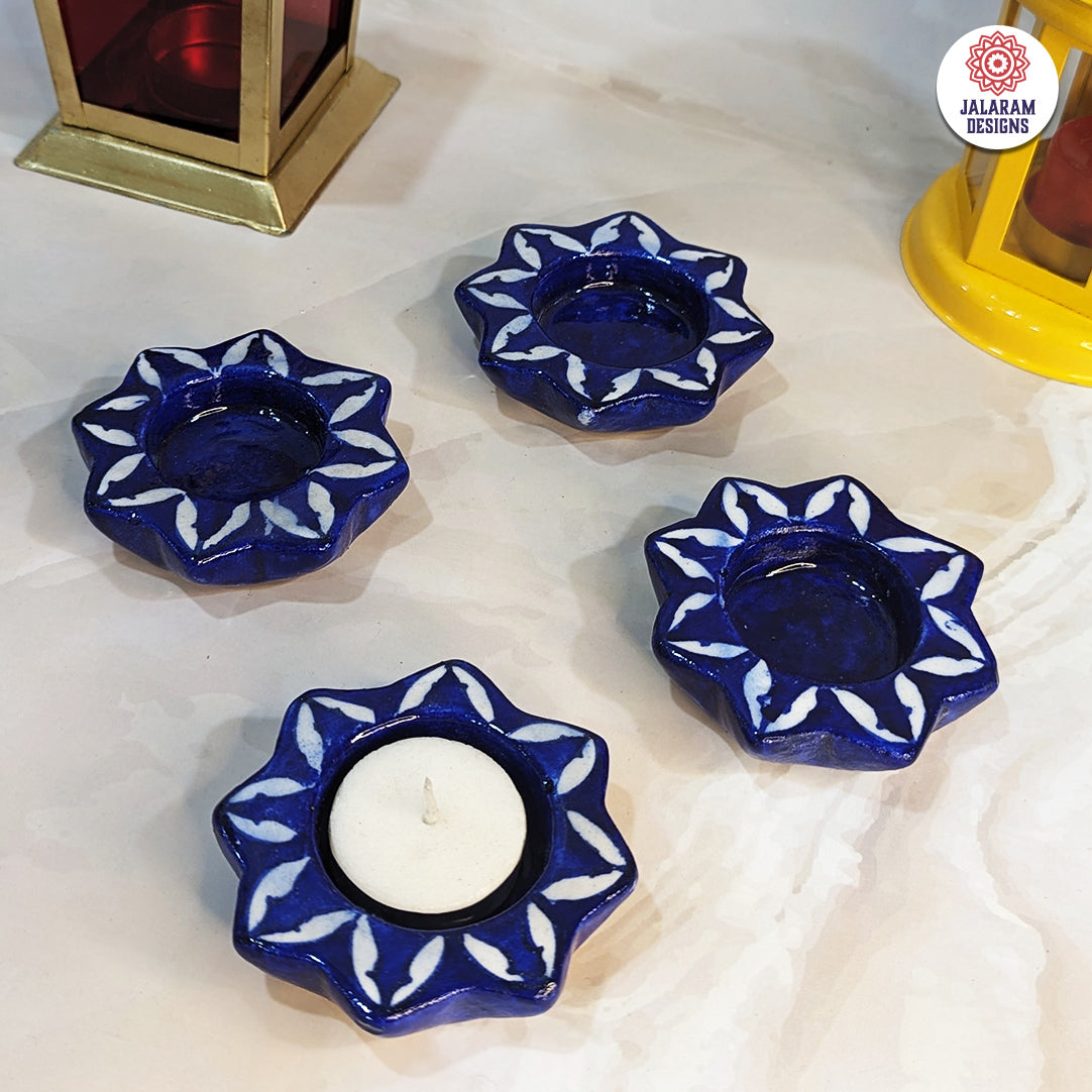 - Jalaram Designs Star Design Blue Pottery Reusable Diyas are perfect for the festive season.