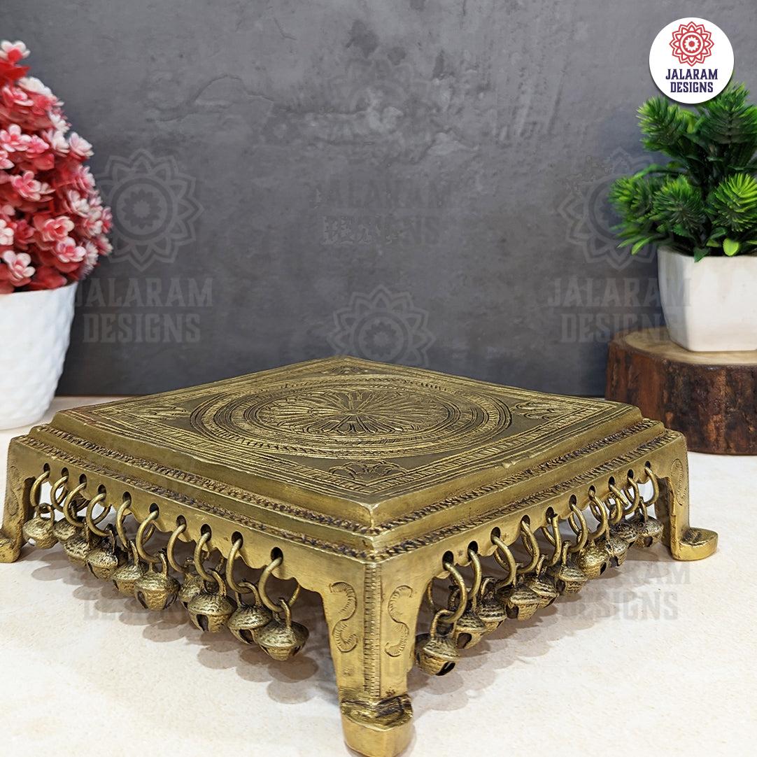 The uniquely designed Chowki has beautiful bells that add a lovely sound and create a peaceful environment for your spiritual practices. It is a practical and beautiful addition to your pooja rituals due to its sturdy construction and enticing appearance.