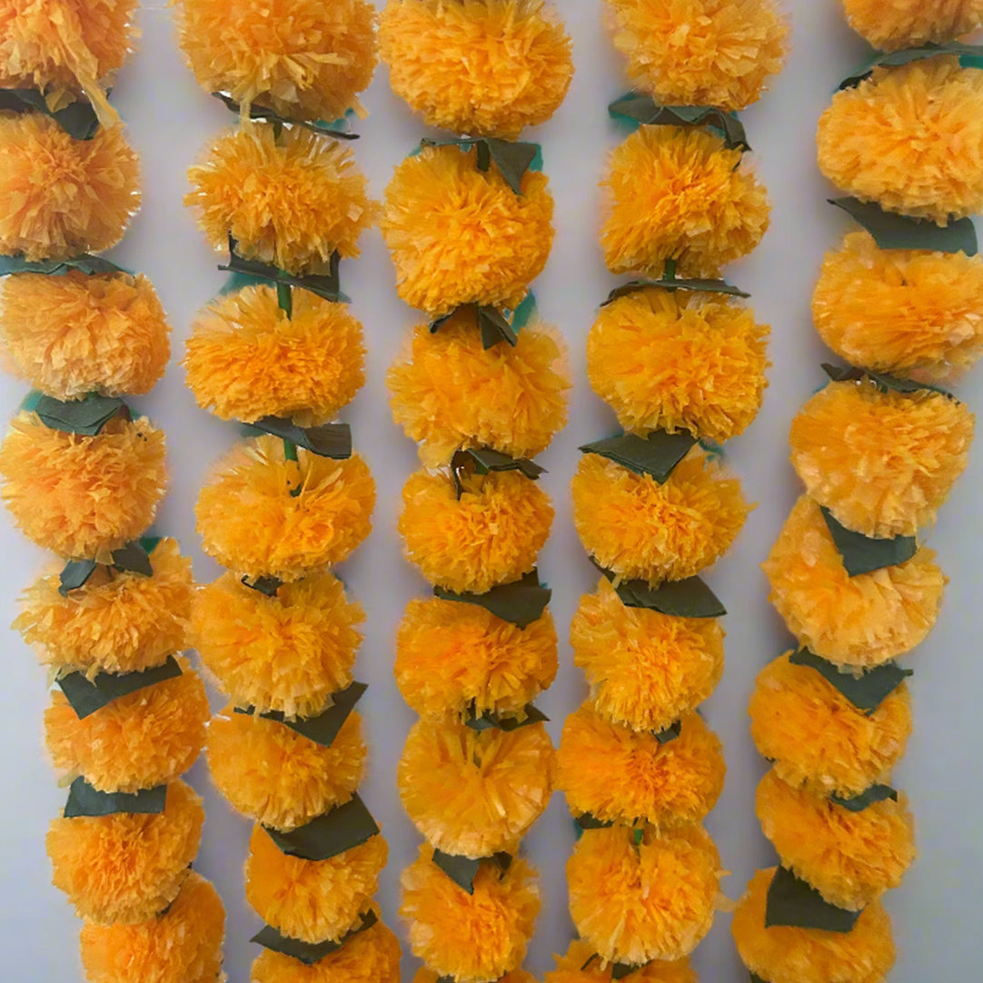 Decorative Plain Orange Marigold Flower And Greean Leaves Garland Strings