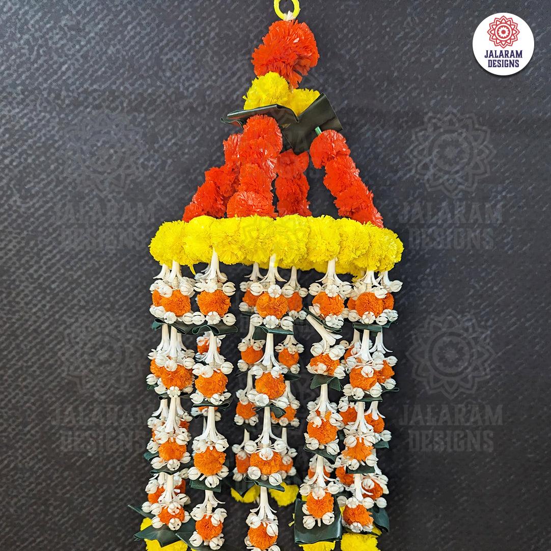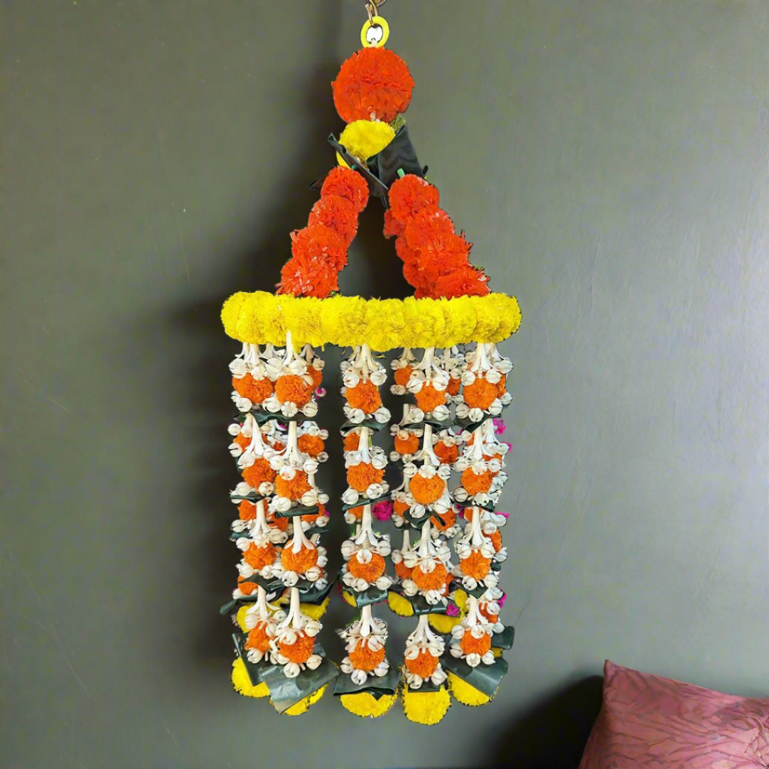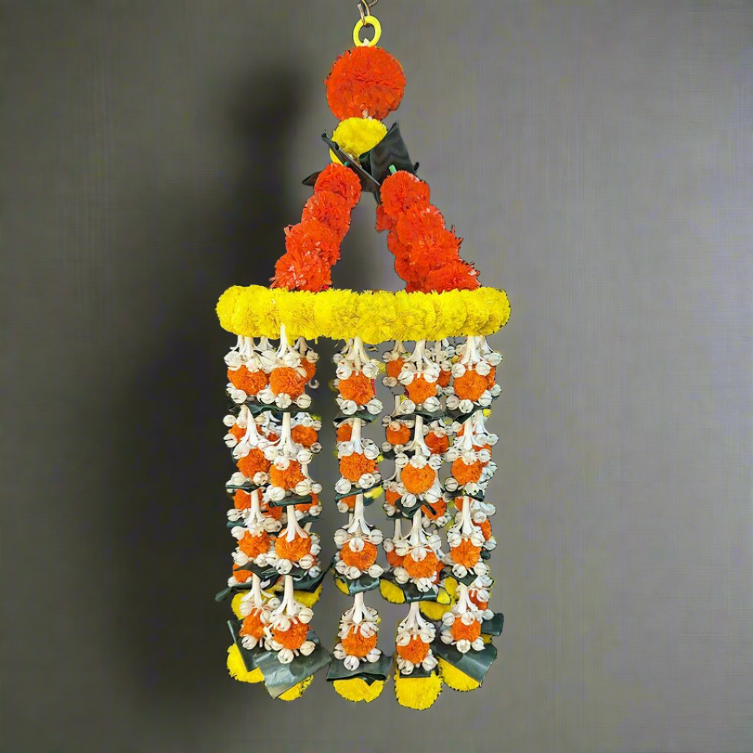 In Hindu culture, the jhoomar is a cherished decorative ornament, often adorned with flowers and employed in religious ceremonies. It symbolises the dance of light and shadow, reflecting life's eternal rhythm. Our Decorative Marigold Jhoomar with Strings captures this essence flawlessly, showcasing the meticulous craftsmanship that Jalaram Designs is renowned for.