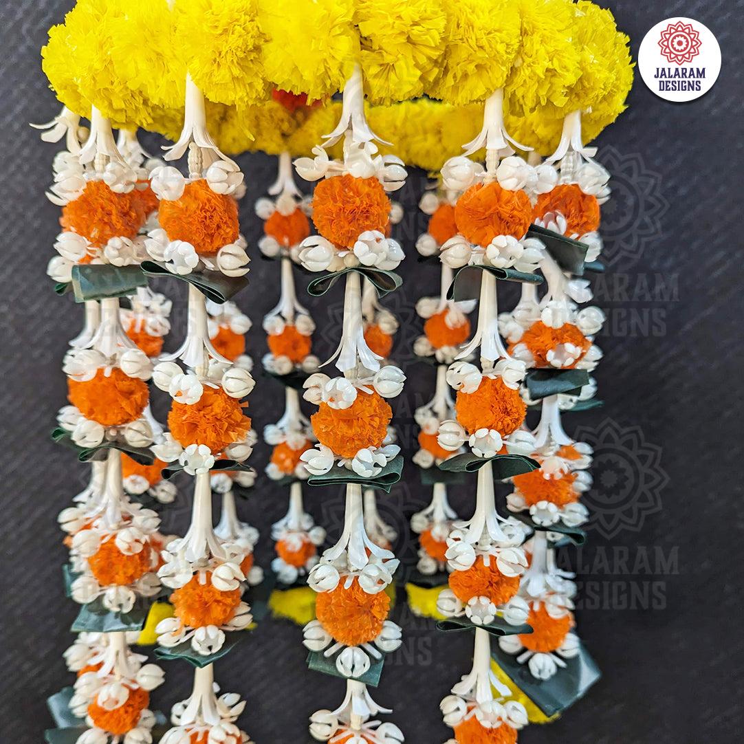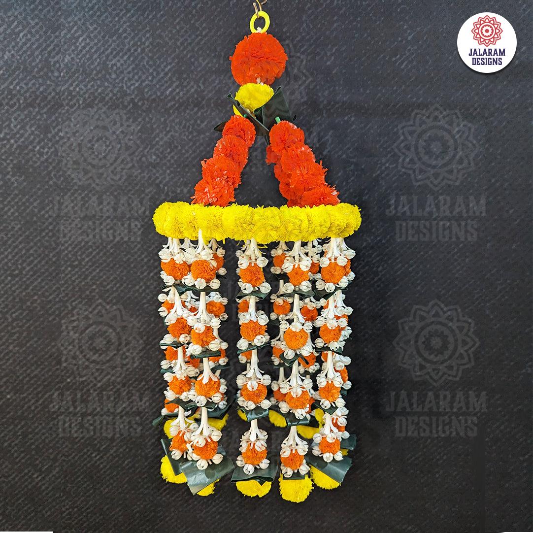 Decorative Yellow And Orange Marigold Jhoomar with Strings