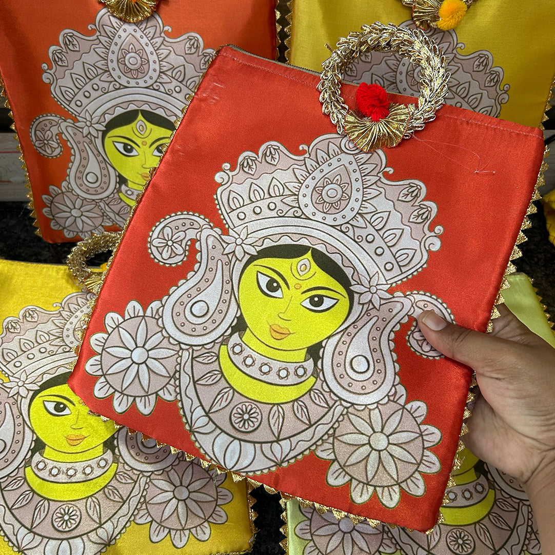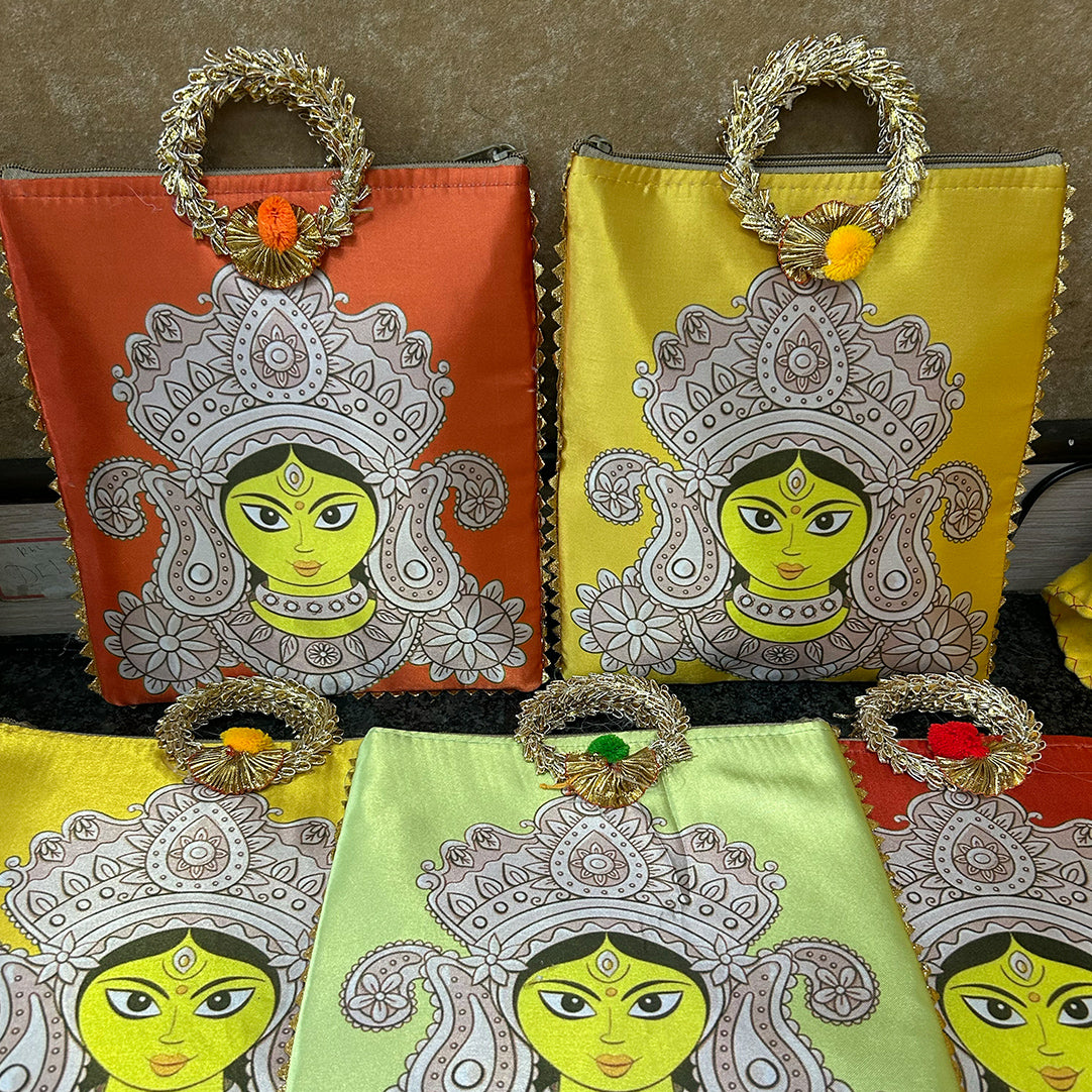 Durga Maa Digital Printed Zipper Bags | Return Gift Bag for Pooja, Navratri | Indian Favor Bag | Festive Gift Bag