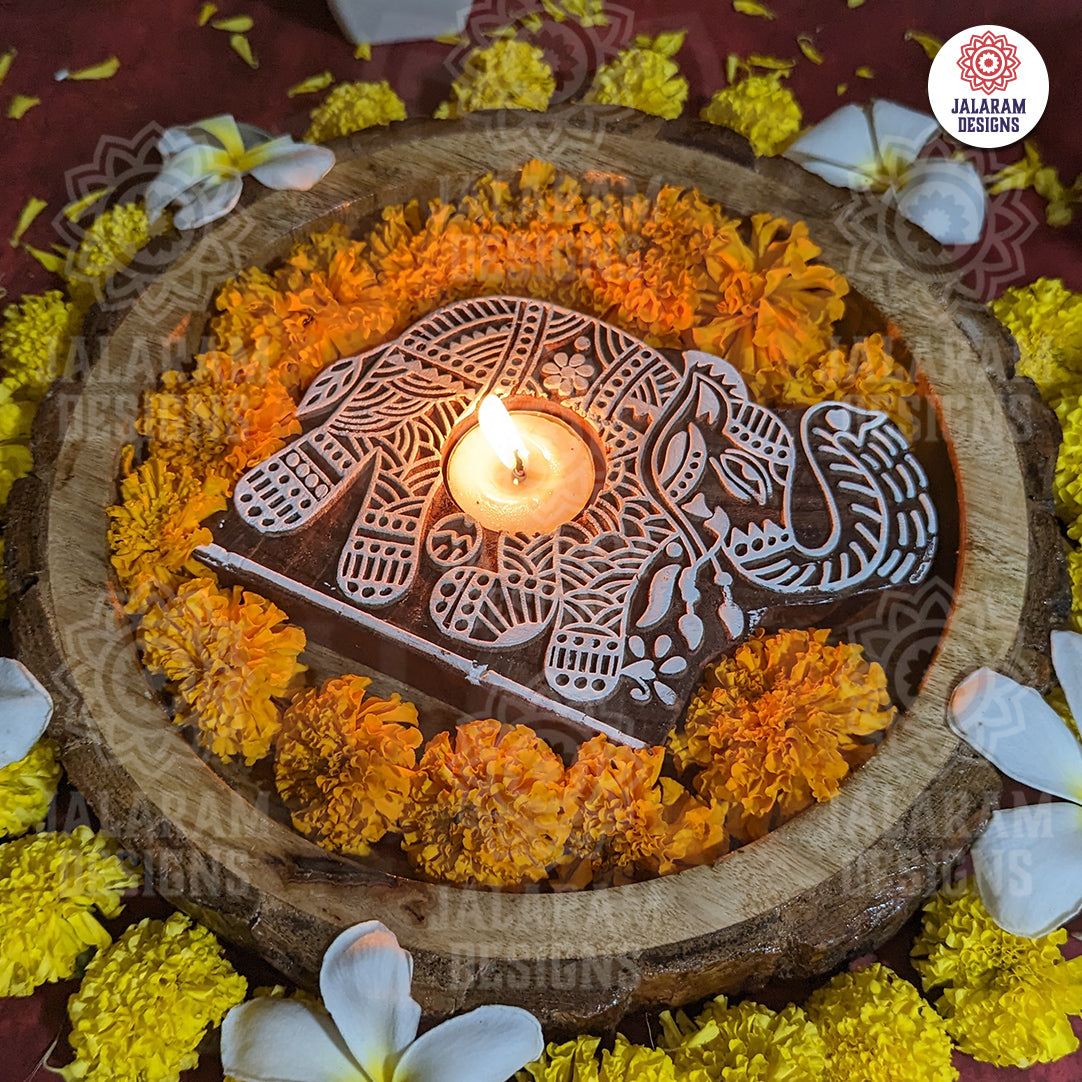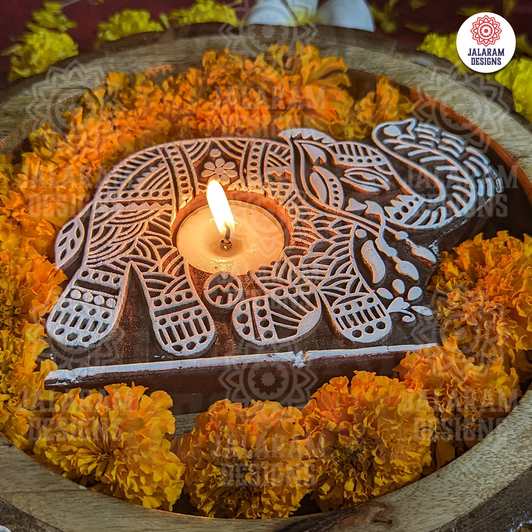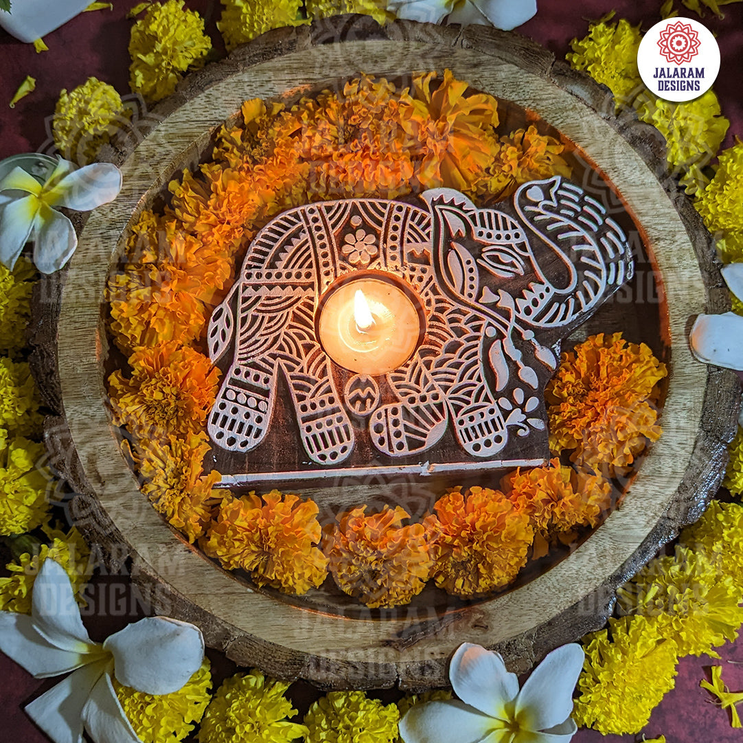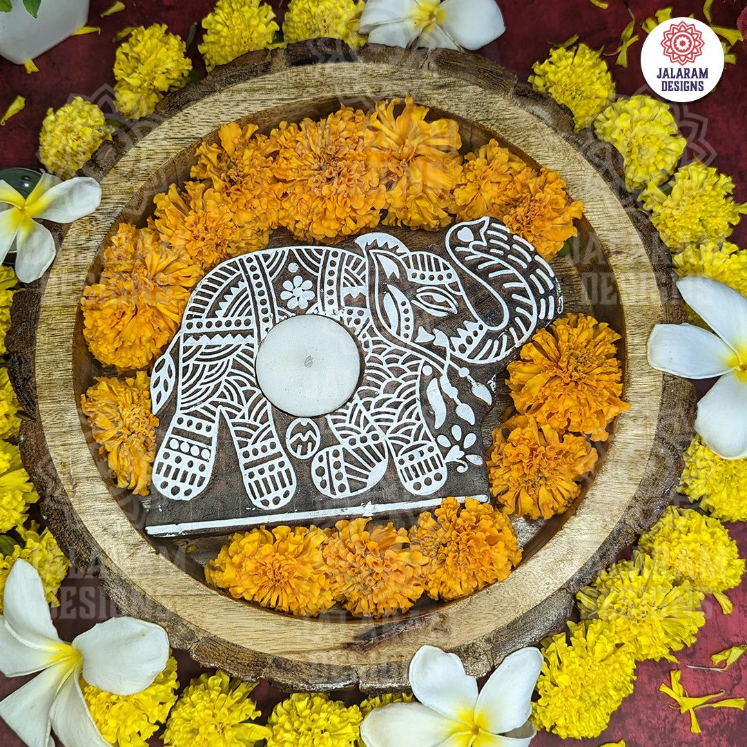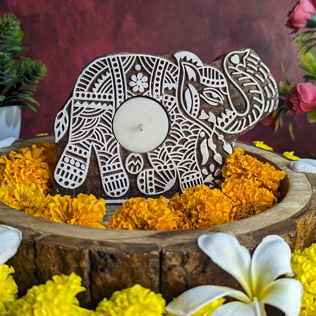 Elephant Shaped Wooden Block Tea Light Holder