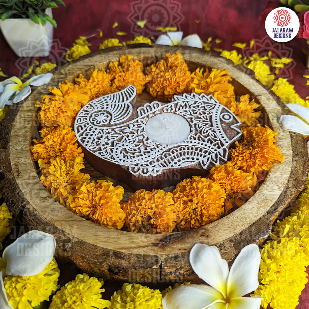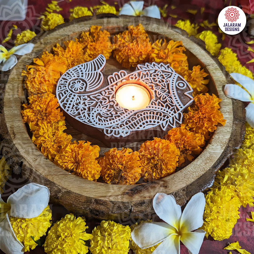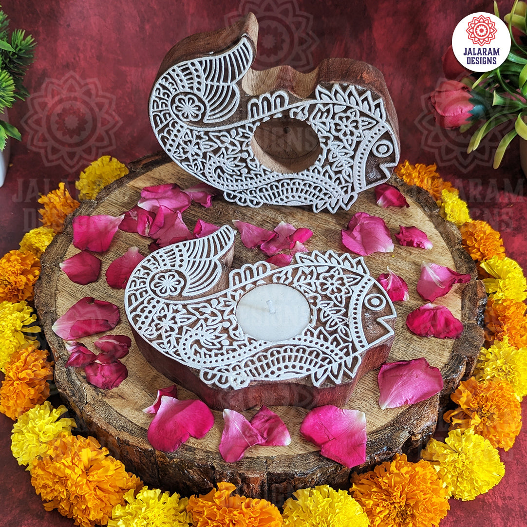 Enhance your ambiance with our exquisite Handcrafted Wooden Engraved Block Tea Light Holders.