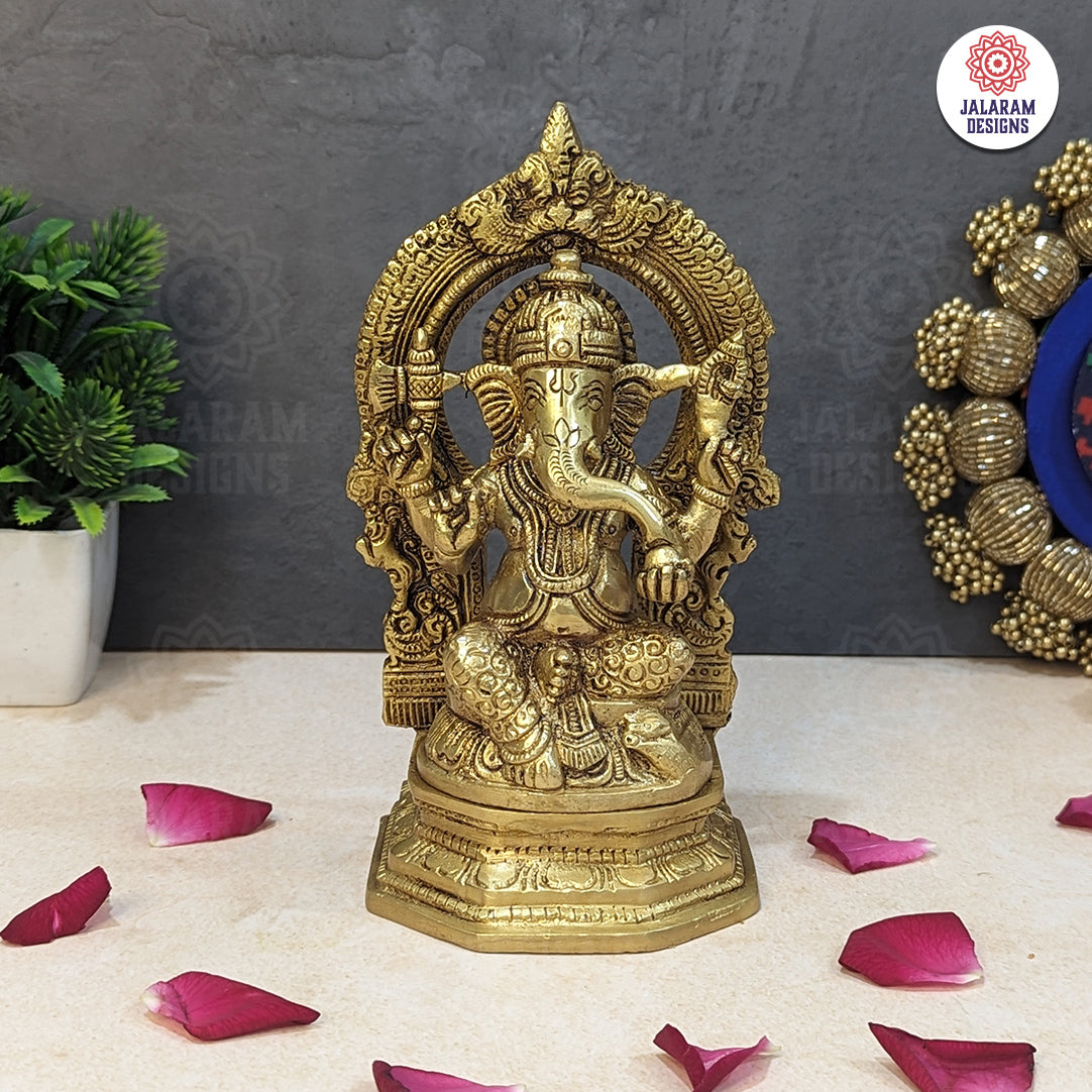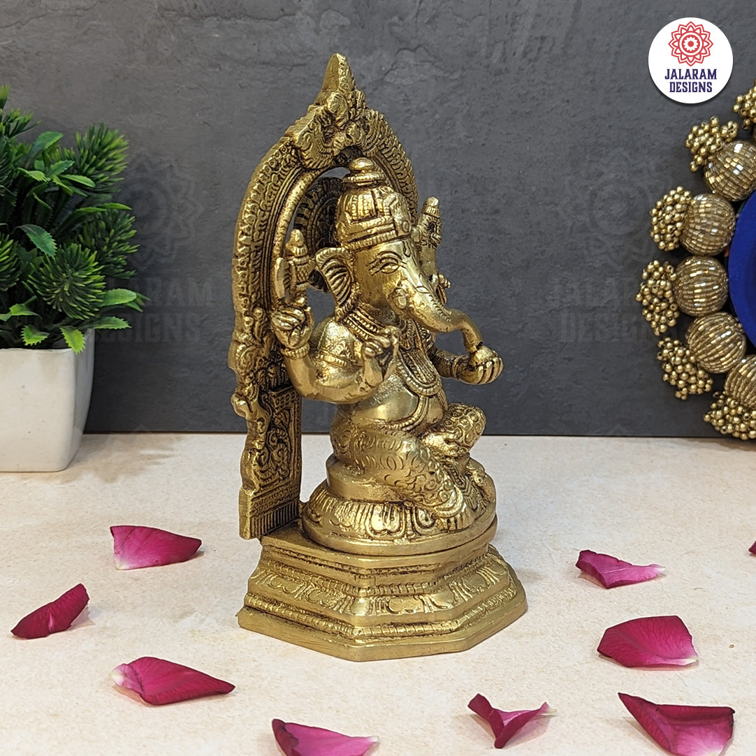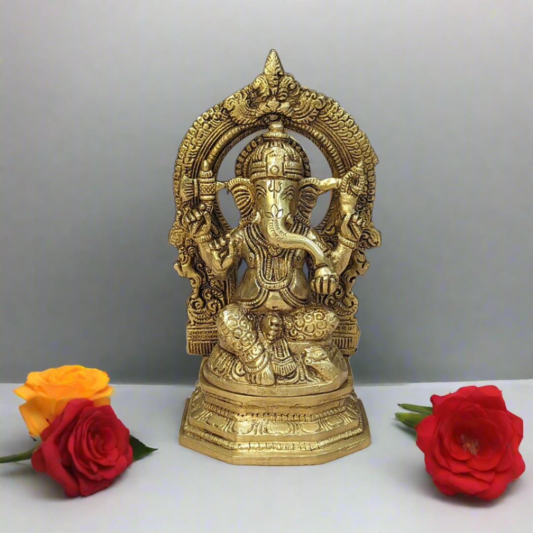 Brass Shri Ganesha Idol Statue for beginning of work, peace and prosperity, for Diwali Puja