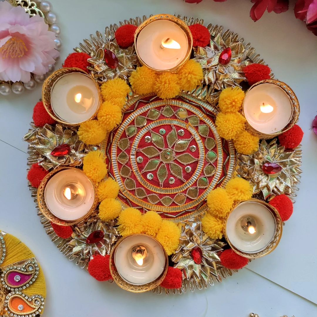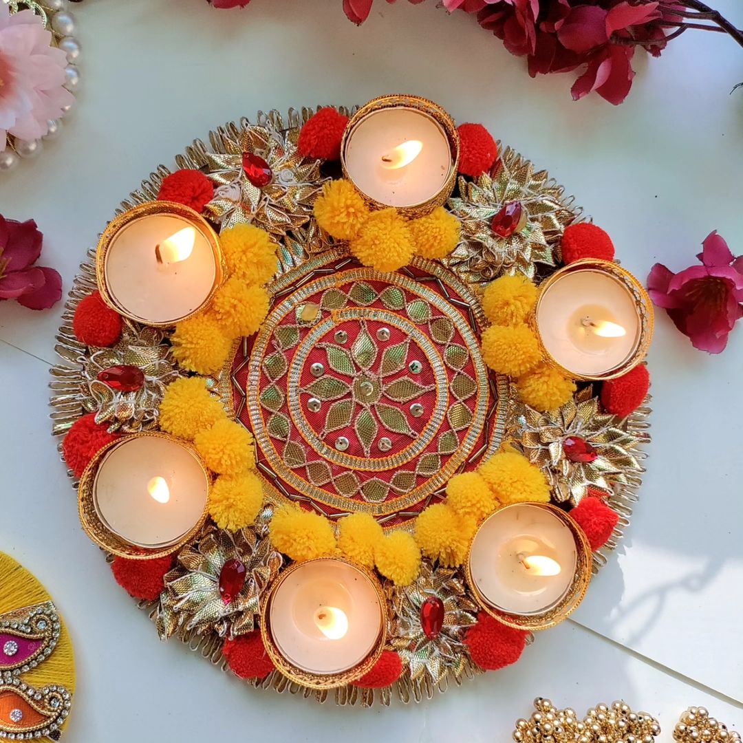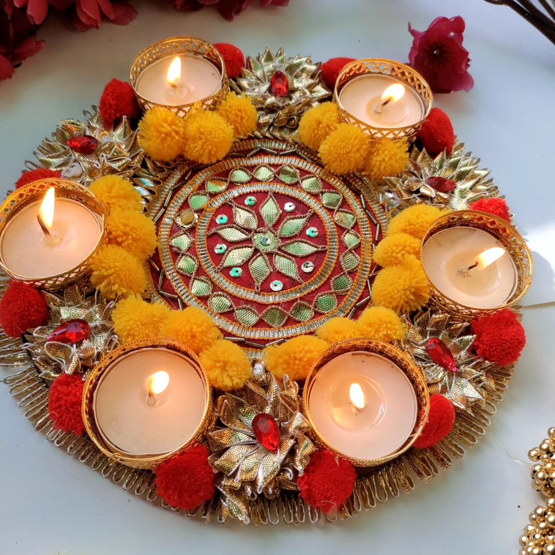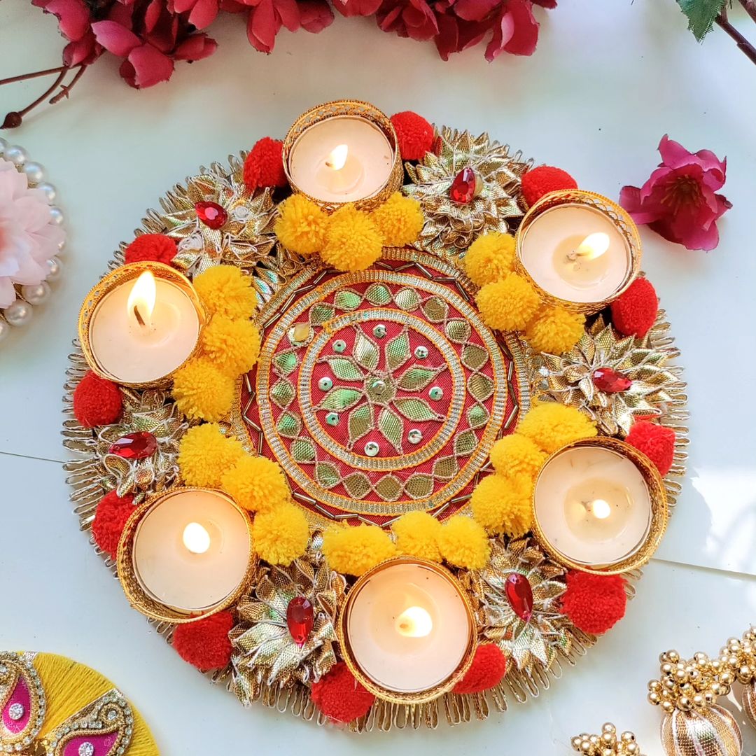 Multicolored Gota Fabric Rangoli Tea Light Holders