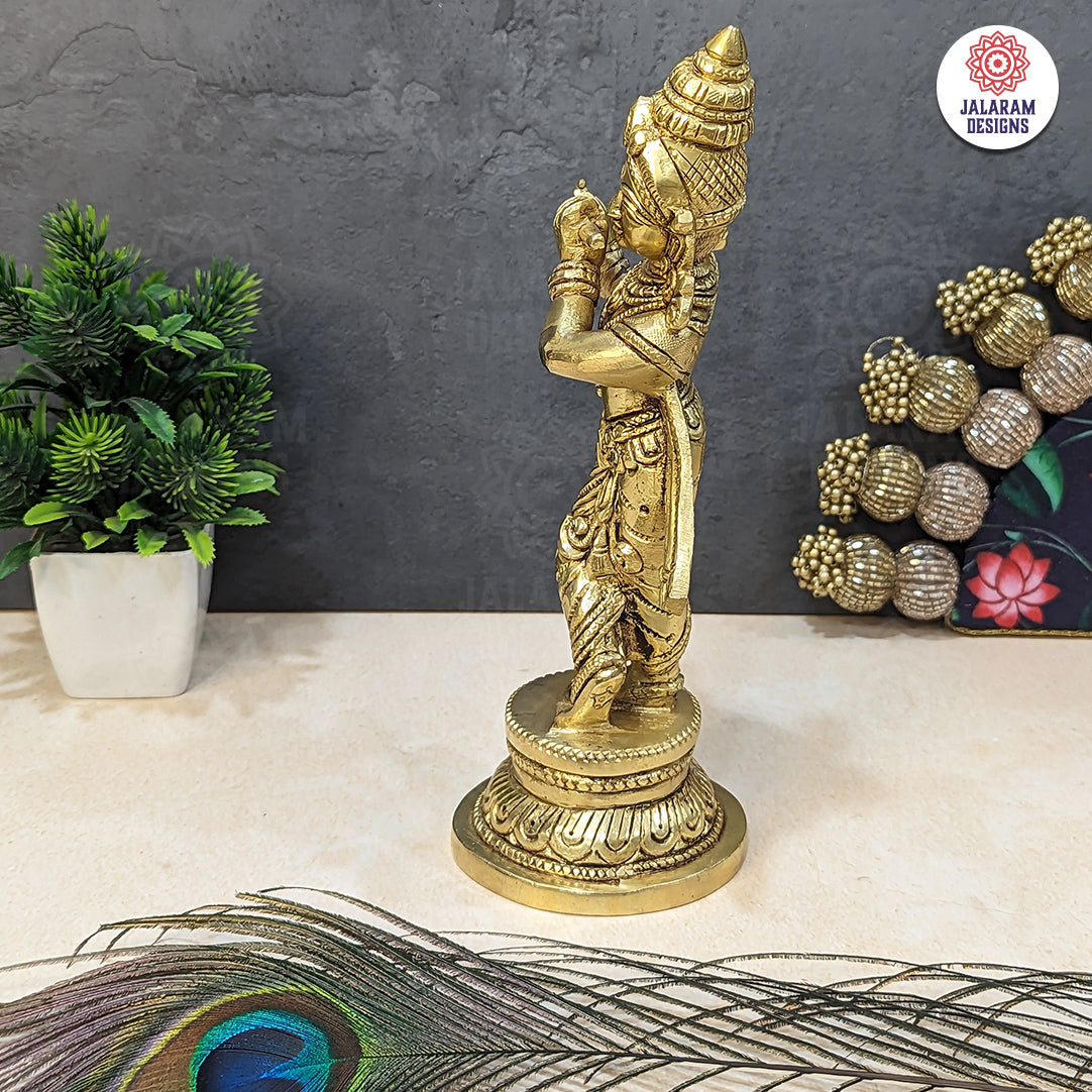 Brass Handcrafted Lord Krishna Idol - Unique Divine Sculpture | For Temple, Home, Office, Pooja, Decor, Gifts