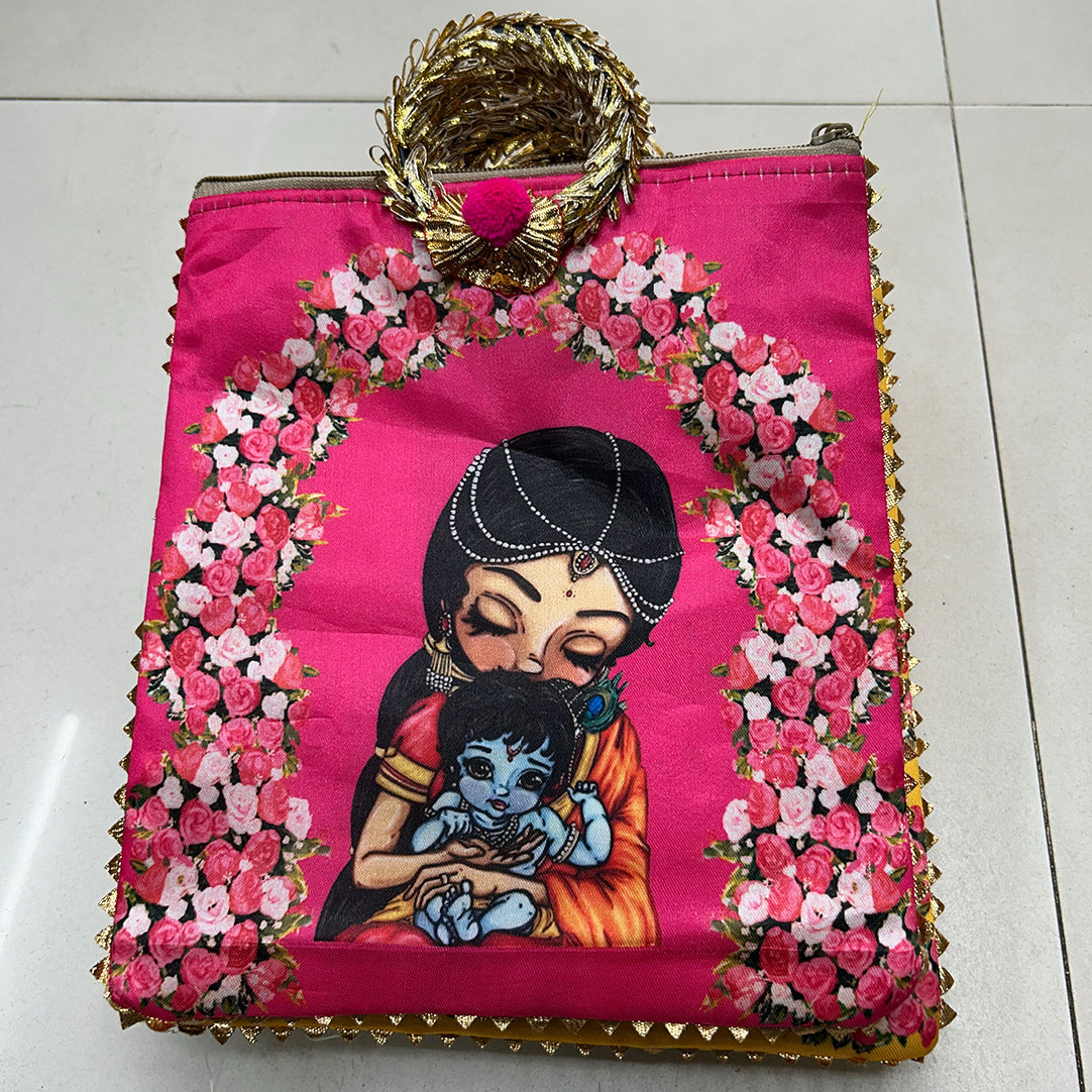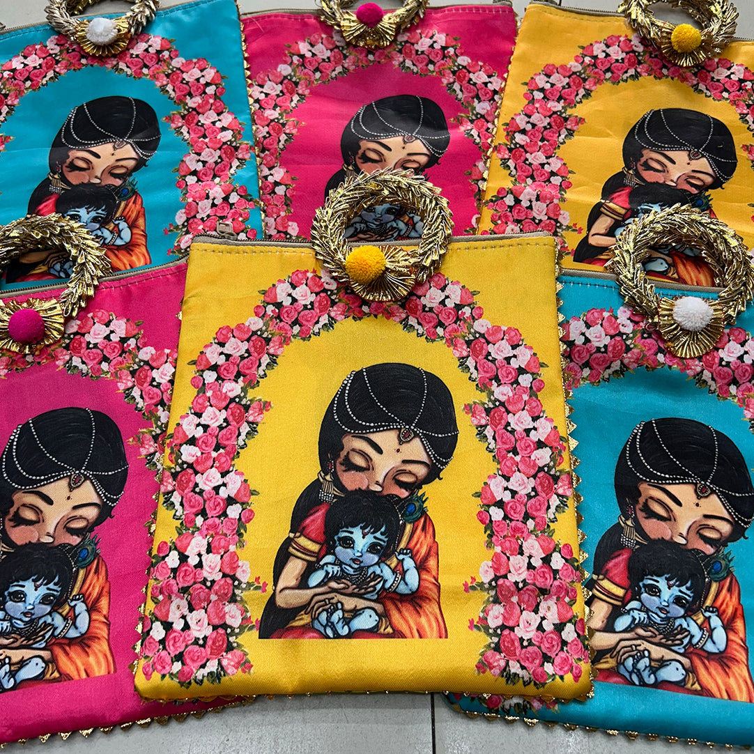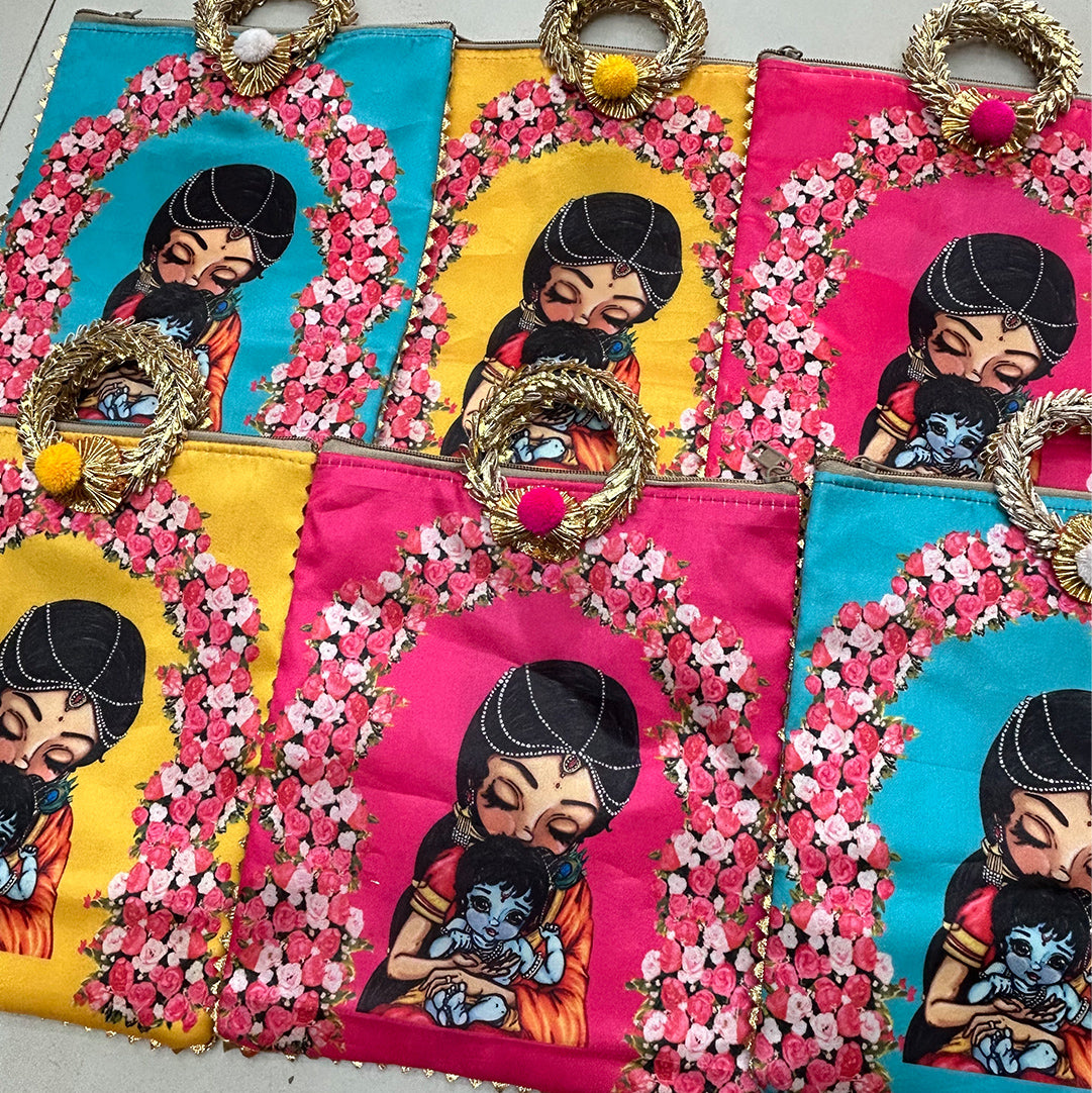Krishna And Yashoda Maa Zipper Bag | Babyshower Giftbag | Housewarming Giftbag | Indian Favor Bag | Festive Gift Bag