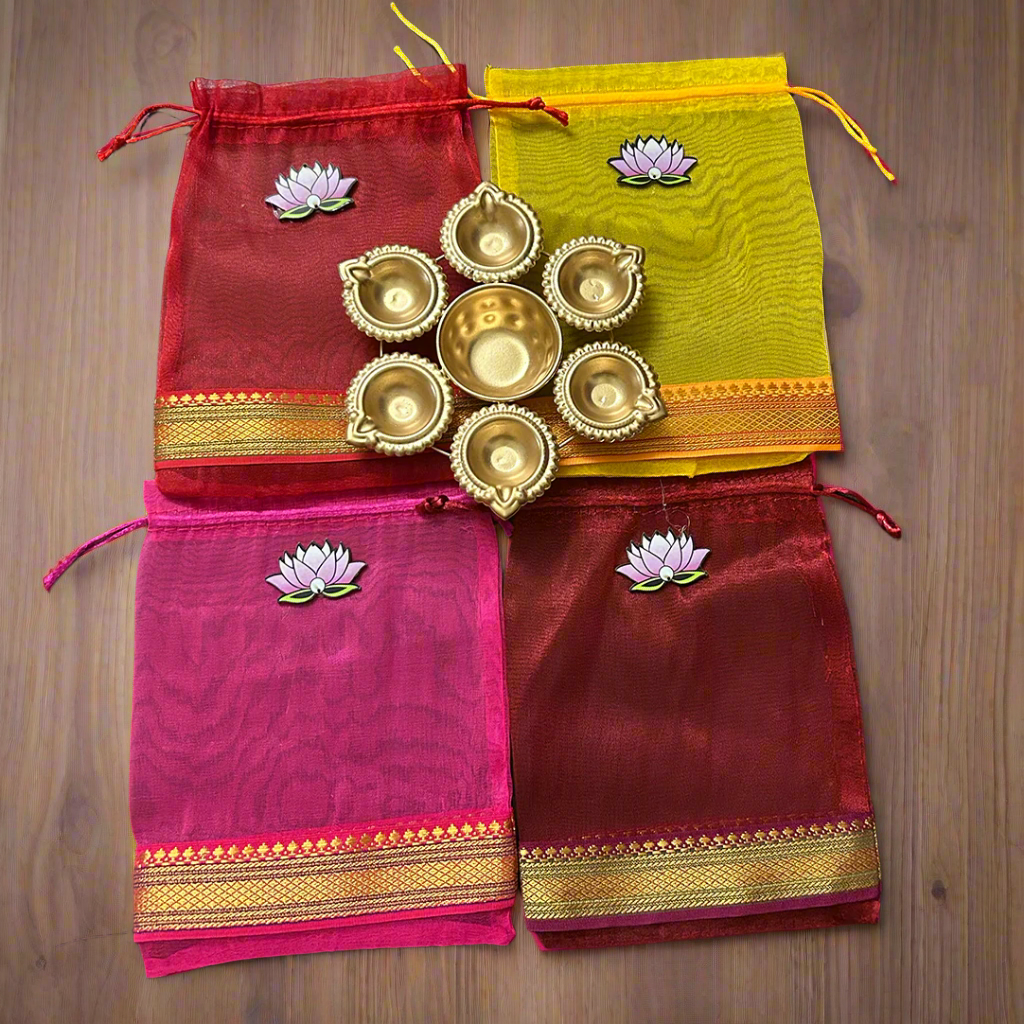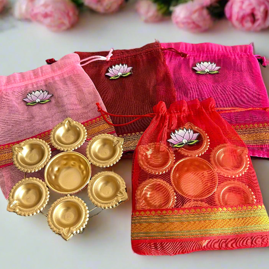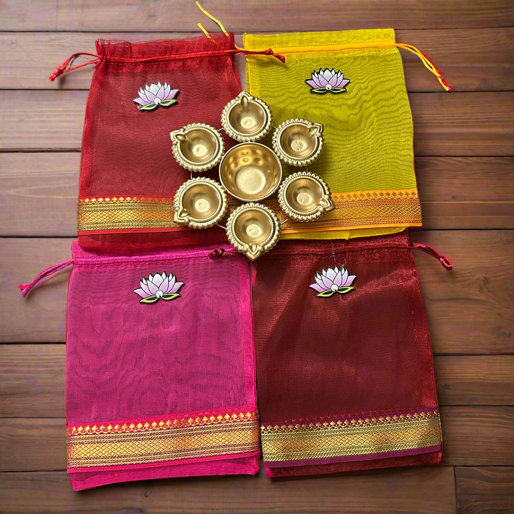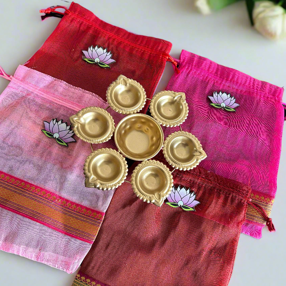 Lotus Cut Brocade Border Potli Bag with Diya Urli
