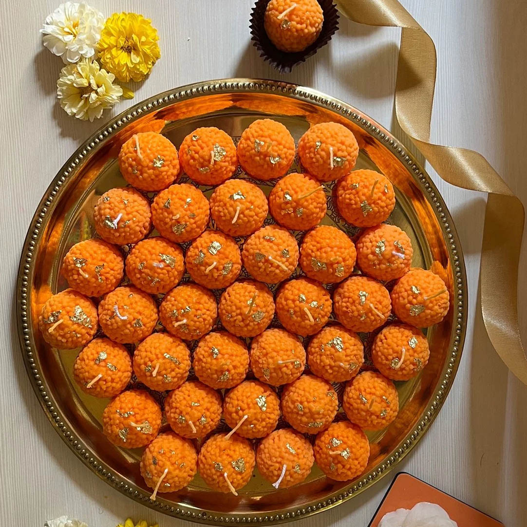 Whether you're looking to add a touch of cultural significance to your home, celebrate a festive occasion, or simply indulge in the pleasure of unique decor and scents, our Motichoor Ladoo shaped scented candles are the ideal choice. They also make for thoughtful gifts that carry the essence of tradition and sophistication.