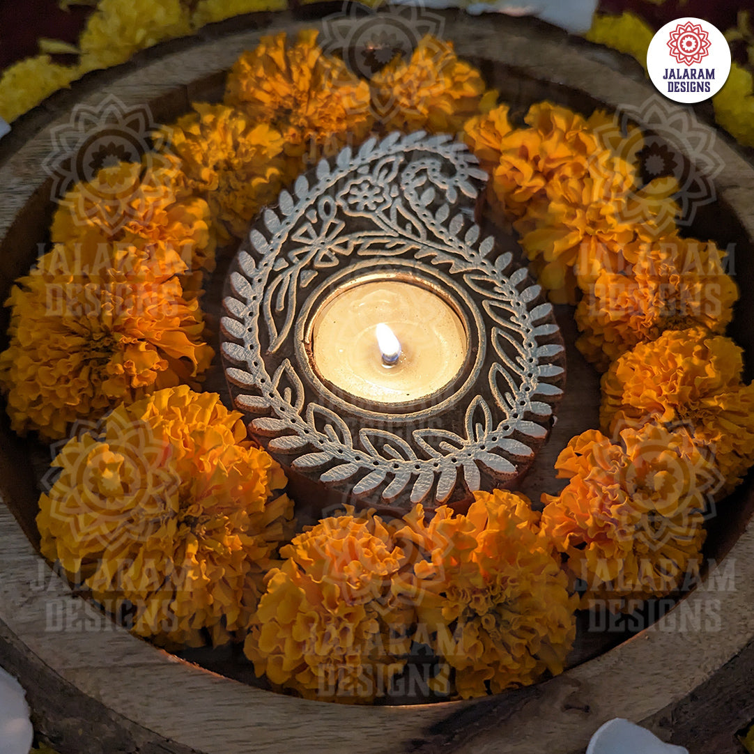 Enhance your ambiance with our exquisite Handcrafted Wooden Engraved Block Tea Light Holders.