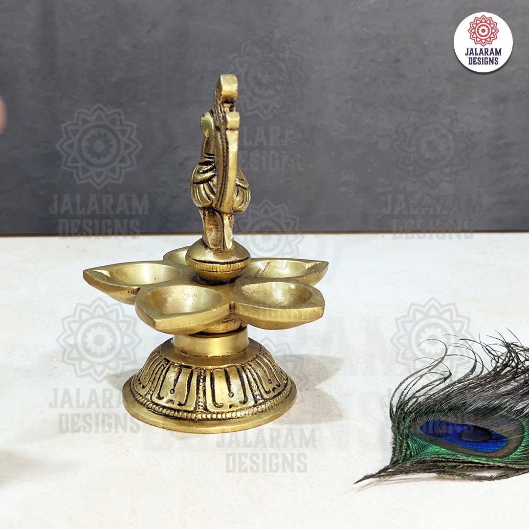 The Jalaram Designs' Peacock Diya exudes refinement and beauty. This appealing diya, masterfully drafted from high-quality brass, will cheer up your space.