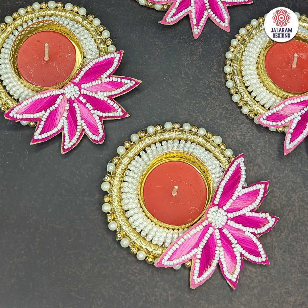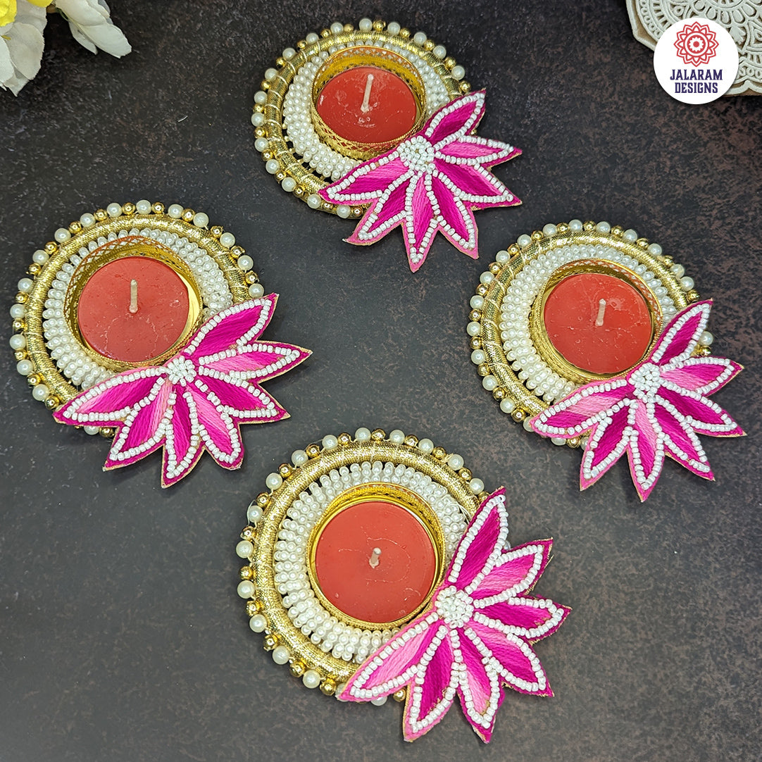 (Set Of 2) Pink Lotus Pearl Bangle Tea Light Holder