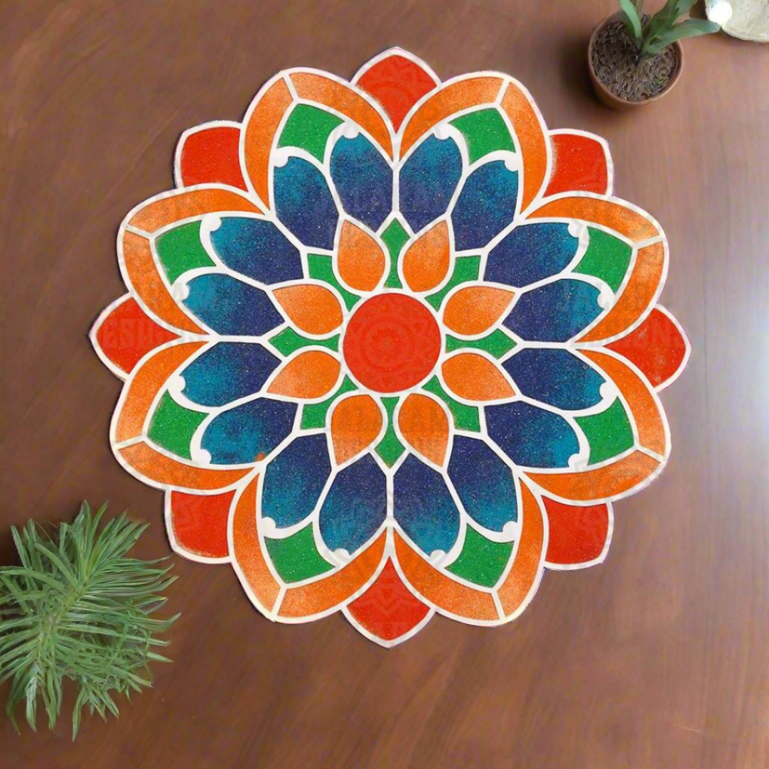 Unlock your creativity with Riddhi Rangoli, infusing artistic and spiritual design to energize your surroundings. As its name suggests, Riddhi Rangoli embodies beauty and prosperity.