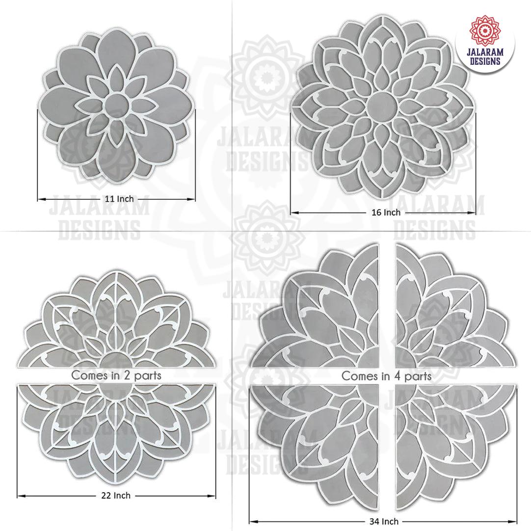 Available in sizes of 11, 16, 22, and 34 inches, Riddhi Rangoli captivates spaces. Explore Jalaram Design, a premier Canadian decor store, and elevate your decor with this transformative piece.