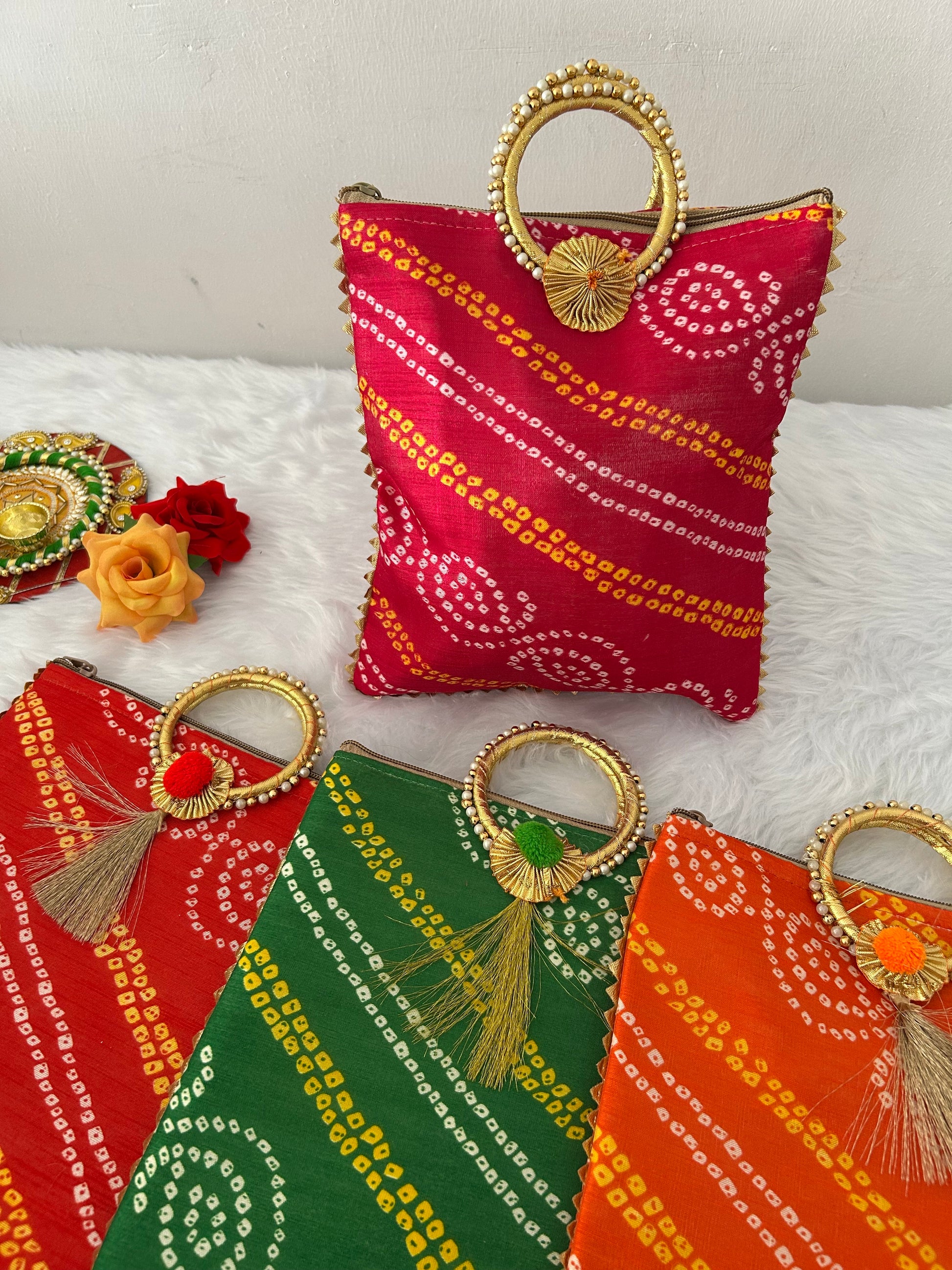 Traditional Bandhej Gifting Bag 10*8 Inch Return Gift Bag for Wedding, Haldi, Mehandi, Festive Gifting