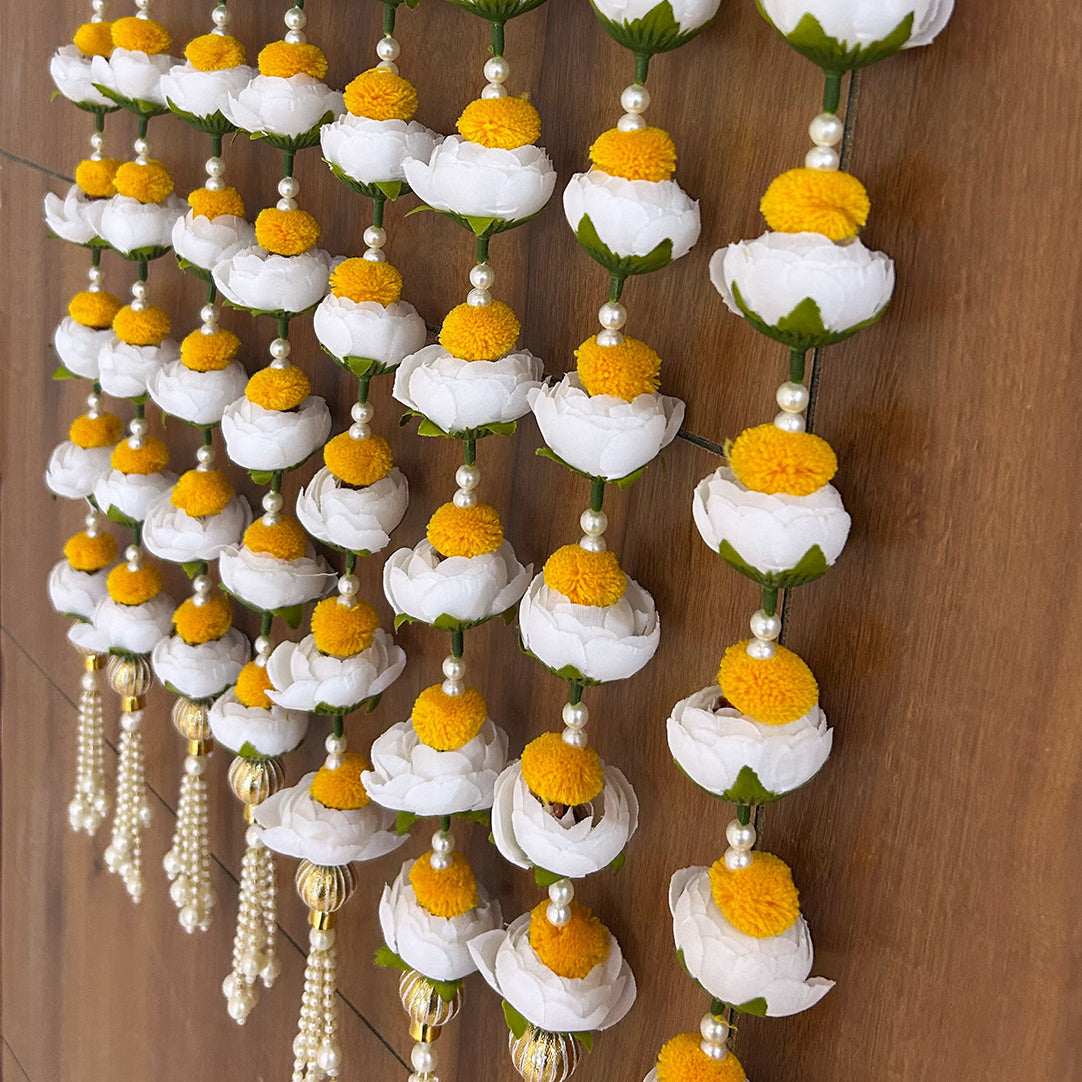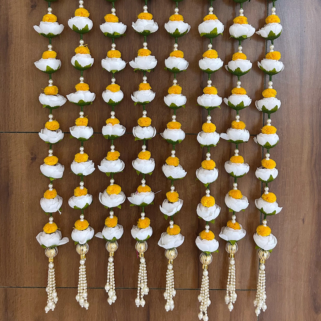 Bring a serene and graceful charm to your celebrations with the White Peony Rose & Pearl Latkan by Jalaram Designs. This handcrafted 3 ft floral hanging embodies purity, tradition, and timeless elegance—making it a perfect addition to your festive and spiritual décor.