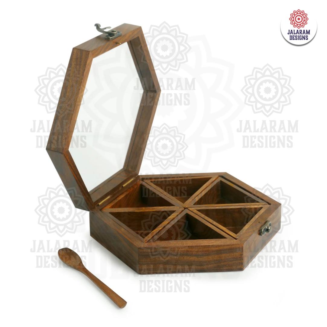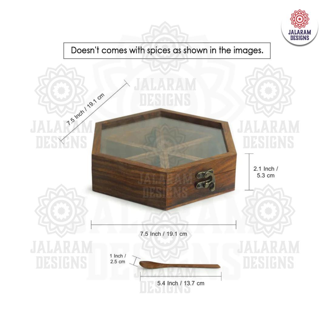 Wooden Handmade Masala Box/Spice Box/Storage Box having 6 Detachable Containers, Brown Color